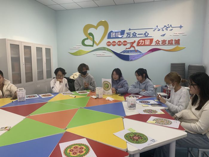 为帮助同学们缓解焦虑和压力,让同学们以更好的状态战胜外部压力,获得精神力量,勇于面对困难与挑战。12月6日在心理健康教育中心修心团辅室开展色彩疗愈工作坊——“绘影画心,携手同行”活动。