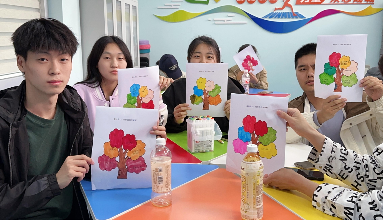 团体心理辅导活动在轻松愉快的热身环节“雨点变奏曲”中拉开序幕。跟随老师的指令同学们做出鼓掌、跺脚等相应动作,在同学们的积极配合下,现场气氛愈加浓烈。接下来,老师带领同学们开展绘制“友谊树”活动,同学们尽情想象发挥自己的创造力,将自己认为有利于“友谊树”成长的养分写在、画在树干上,每个人都兴致勃勃,拿着彩笔,画出属于自己的友谊树。接下来,老师带领同学们观看电影《夏日友情天》,在主人公产生分歧时、两人放下心结彼此支持各自的梦想片段时,许多同学都陷入了深深的感动与思考。在分享“心”感悟阶段,同学们纷纷表示在成长的道路上,都会遇到挫折和困难,朋友们可以给予我们最坚定的支持和鼓励,他们或许不能代替我们去面对,但是他们的陪伴能带给我们力量。