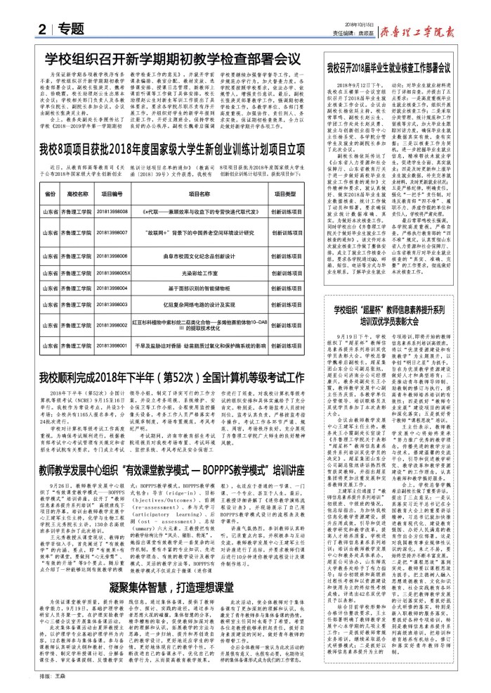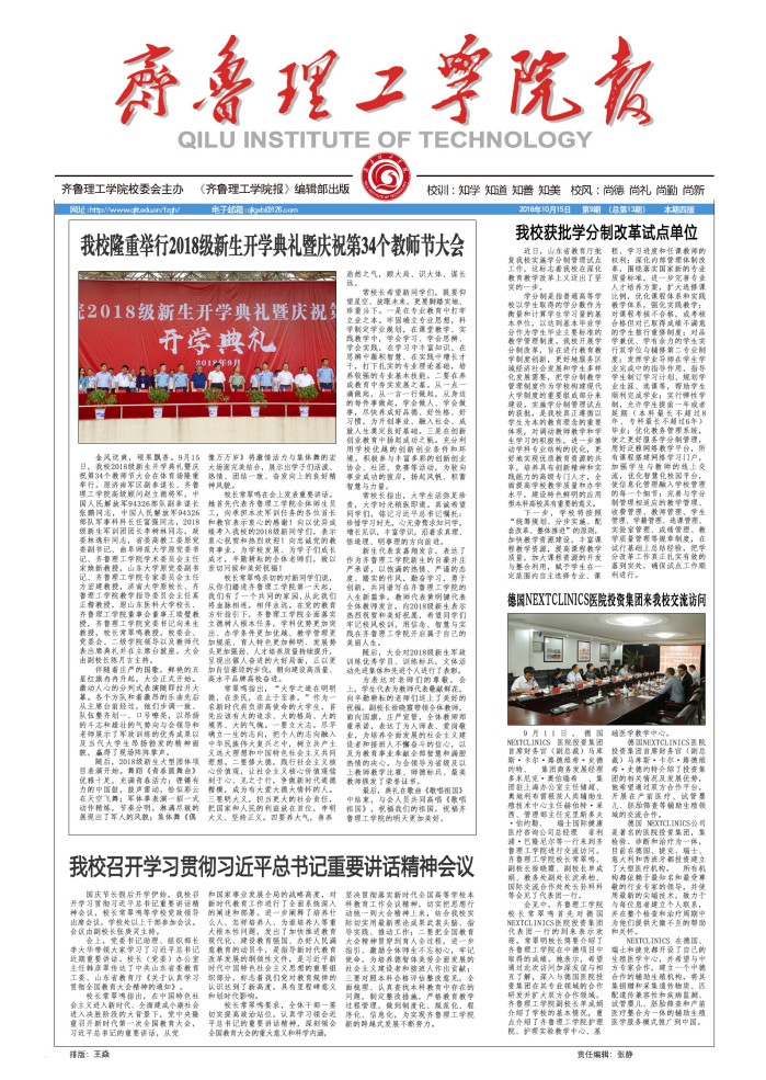 齐鲁理工学院校报(20181015)