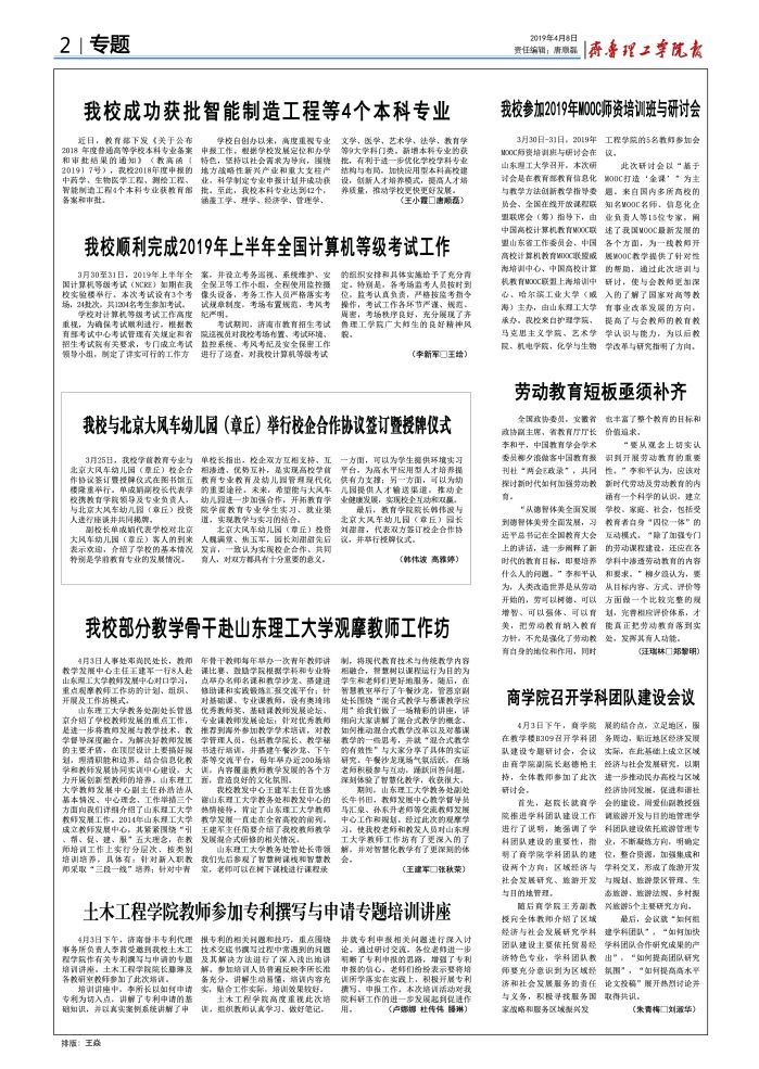 齐鲁理工学院校报(20190408)