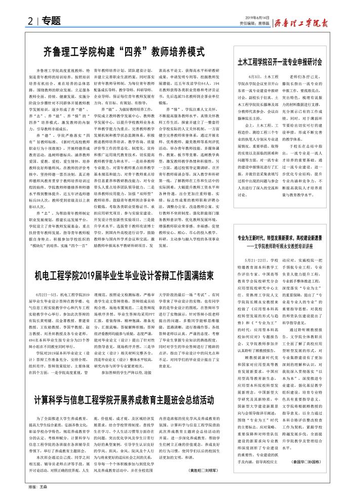 齐鲁理工学院校报(20190614)