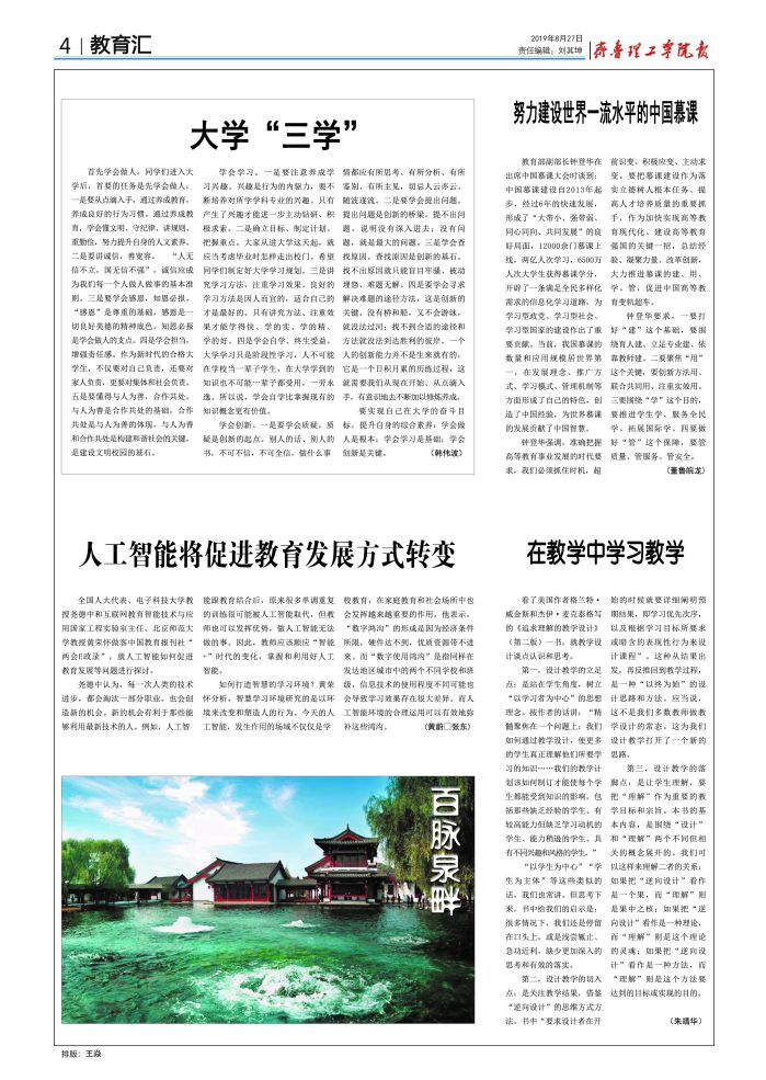 齐鲁理工学院校报(20190827)