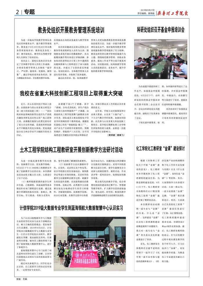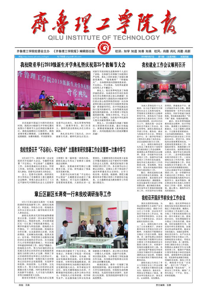 齐鲁理工学院校报(20191012)