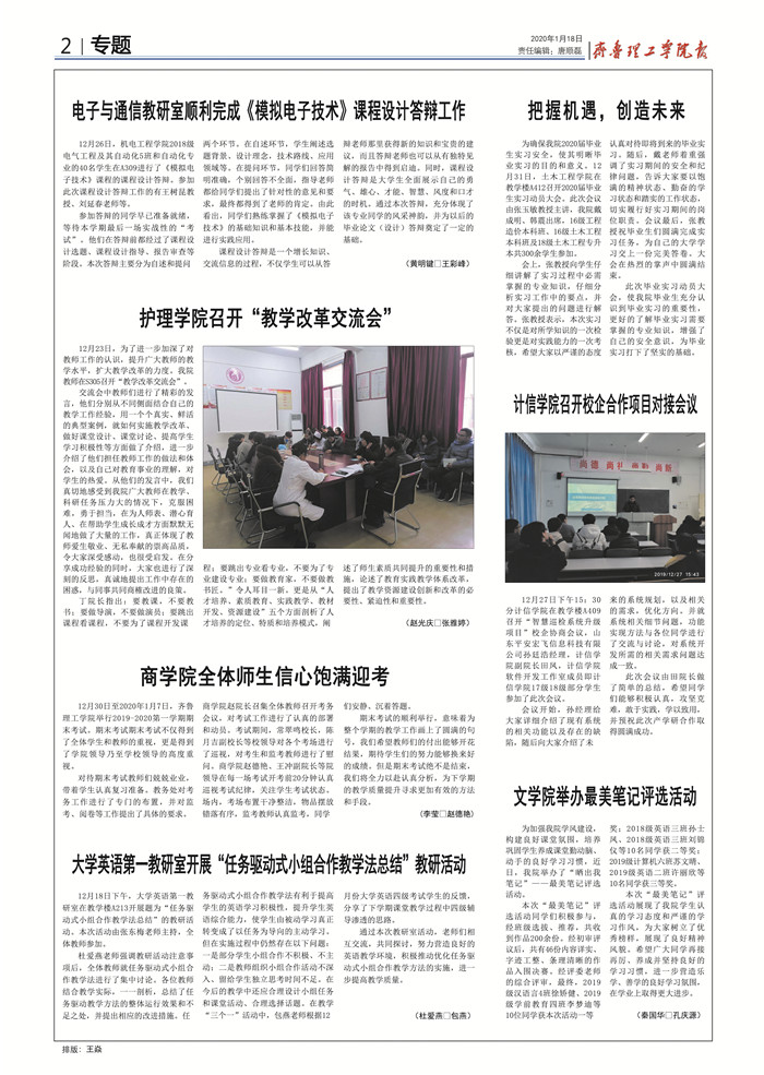 齐鲁理工学院校报(20200118)