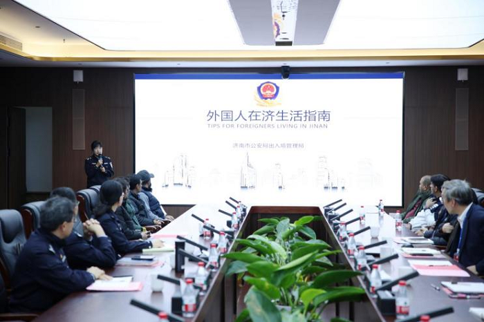 2025年11月13日,济南市公安局出入境管理局副局长刘锋一行莅临齐鲁理工学院,面向全体外籍教师开展法律法规宣传与培训活动。会议在学校稷下楼齐鲁厅举行,由副校长单成娟主持。国际交流与合作处处长丁磊、人事处副处长孟岩、全体外籍教师以及各学院外管联络员等人员参加培训。