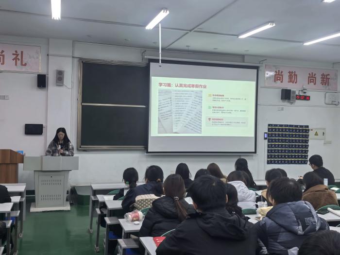更新时间:2026-03-13 14:50 为总结展示学生寒假实践成果,深化养成教育实效,引导学生在新学期伊始收心归位、明确目标,2026年3月初,商学院组织各班级陆续开展了寒假“养成教育六行动”主题分享会。同学们围绕“学史爱国、阅读经典、社会调研、磨炼品行、劳动体验、学习计划”六个方面,分享假期收获,交流成长感悟。各班在全员分享的基础上,推选出优秀代表,将参加后续举行的学院级分享展示活动。