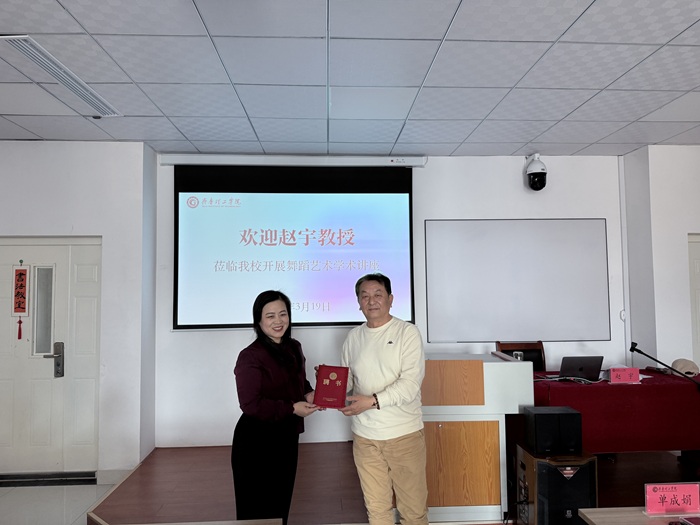 更新时间:2025-03-26 15:05 2025年3月19日下午,我院特邀山东艺术学院赵宇教授来校做题为《非遗视域下的山东鼓子秧歌》的学术报告。我校副校长单成娟出席报告会并为赵宇教授颁发齐鲁理工学院客座教授聘书。