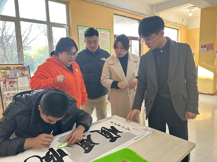在特殊教育服务中心负责人陪同下,尚院长、李院长等一行人参观了校园环境、教学区、康复训练区以及学生作品展示区,深入了解孩子们的学习与生活状况。