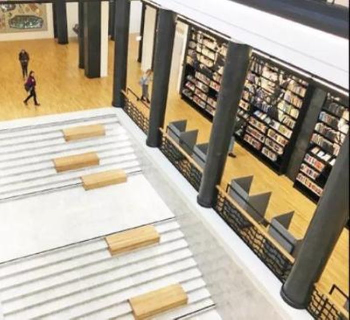 一楼是一个可供任意访问者使用的共享空间,有音乐厅、餐厅、休息区和一个很棒的图书博物馆,访问者可以在其中了解书籍的制作方式和方法,熟悉真正的印刷品,参观根据不同作品主题装饰的虚拟房间。