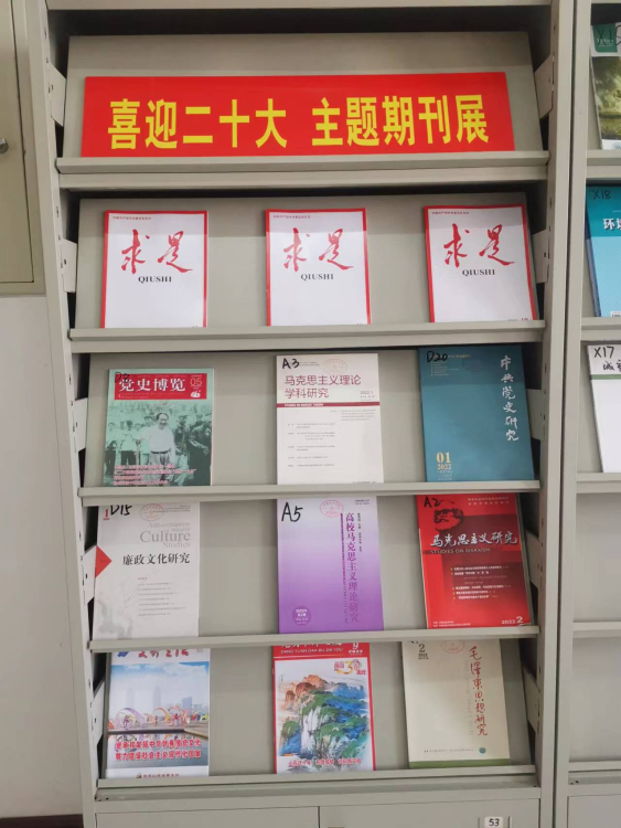 为迎接并庆祝党的二十大胜利召开,我校图书馆期刊阅览室特推出“喜迎二十大主题期刊展”。精选并展出包括《求是》、《党史博览》、《马克思主义研究》等党建期刊,进一步使我校广大师生深入地了解党的历史,悟思想、办实事、开新局,了解中国共产党走过的峥嵘岁月和取得的辉煌成就,进一步增强民族自信心,将中国共产党的伟大精神代代相传。
