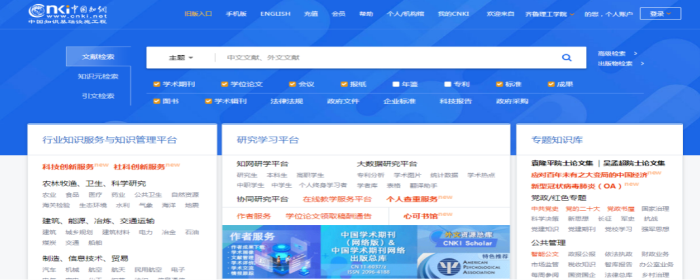 中国知网知识发现网络平台为外读者提供中国学术文献、外文文献、学位论文、报纸、会议、年鉴、工具书等各类资源统一检索、统一导航、在线阅读和下载服务。
