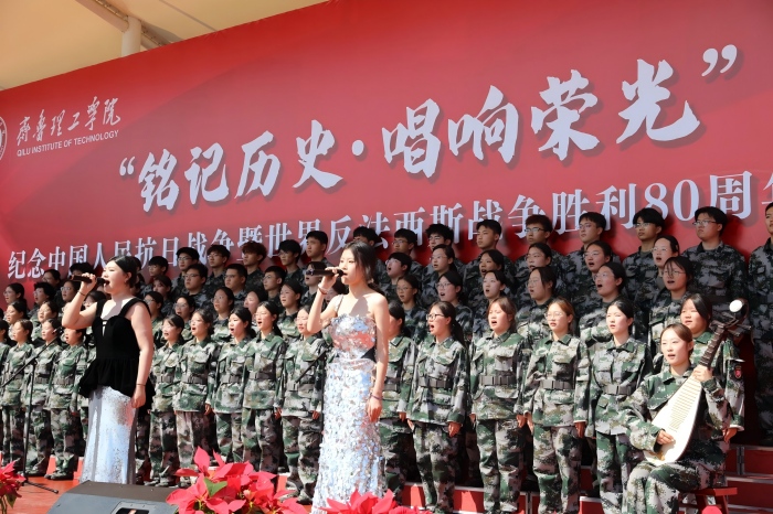 本次大赛紧扣“铭记历史·唱响荣光”主题,纪念中国人民抗日战争暨世界反法西斯战争胜利80周年。赛场上,各连队风格多样、亮点频出。文学院合唱团精心筹备,演唱时精神饱满、声部配合默契,以丰富的情感完美诠释了《东方红》《弹起我心爱的土琵琶》两首经典曲目,赢得现场阵阵掌声。