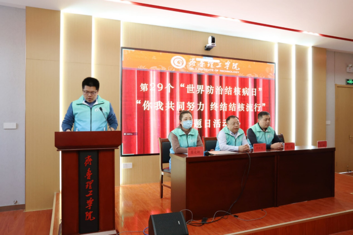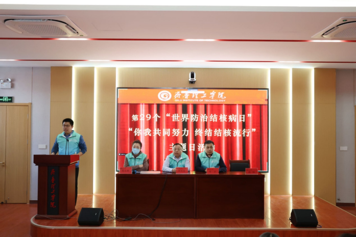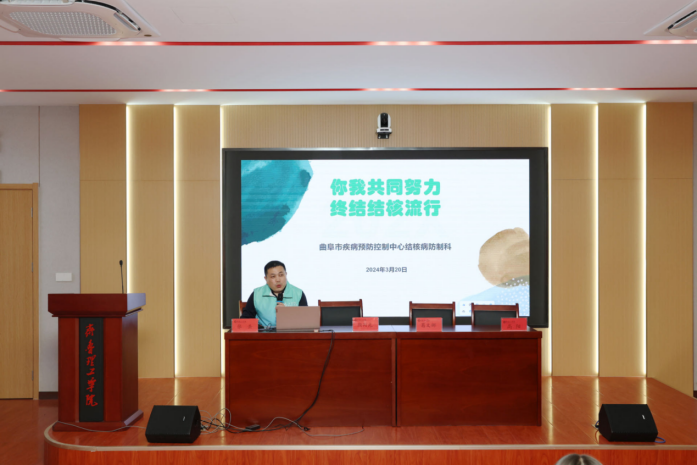 为了进一步普及结核病防治知识,提高同学们对结核病的认识,加强同学们的自我保护意识,齐鲁理工学院曲阜校区于3月20日下午在第一学术报告厅,举办了第29个“世界防治结核病日”宣传活动。出席此活动的领导:曲阜市疾控中心副主任颜丙光、曲阜市疾控中心教育科科长葛文娜、曲阜市疾控中心肺结核防治科科长张岳,本次会议由学团工作部副部长高阳主持。