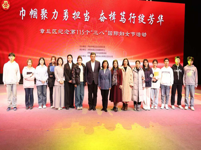 3月7日,章丘区“巾帼绽芳华”庆祝第115个“三八”国际劳动妇女节主题活动在区文化中心举行。我校师生创作的原创情景剧《就在章丘了》作为压轴节目登台,以鲜活的艺术形式展现新时代女性扎根章丘、奋斗逐梦的动人故事,引发全场共鸣。