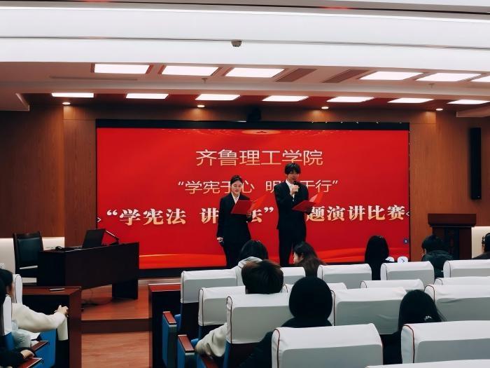 为弘扬宪法精神,增强学生法治观念,2025年12月4日,我校在稷下楼曾子厅举办了“学宪法 讲宪法”主题演讲比赛,现场气氛热烈,精彩纷呈。