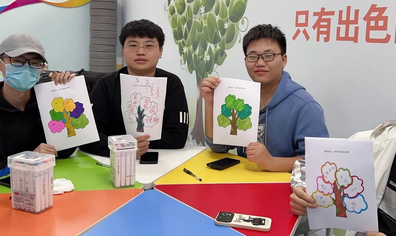 团体心理辅导活动在轻松愉快的热身环节“雨点变奏曲”中拉开序幕。跟随老师的指令同学们做出鼓掌、跺脚等相应动作,在同学们的积极配合下,现场气氛愈加浓烈。接下来,老师带领同学们开展绘制“友谊树”活动,同学们尽情想象发挥自己的创造力,将自己认为有利于“友谊树”成长的养分写在、画在树干上,每个人都兴致勃勃,拿着彩笔,画出属于自己的友谊树。接下来,老师带领同学们观看电影《夏日友情天》,在主人公产生分歧时、两人放下心结彼此支持各自的梦想片段时,许多同学都陷入了深深的感动与思考。在分享“心”感悟阶段,同学们纷纷表示在成长的道路上,都会遇到挫折和困难,朋友们可以给予我们最坚定的支持和鼓励,他们或许不能代替我们去面对,但是他们的陪伴能带给我们力量。