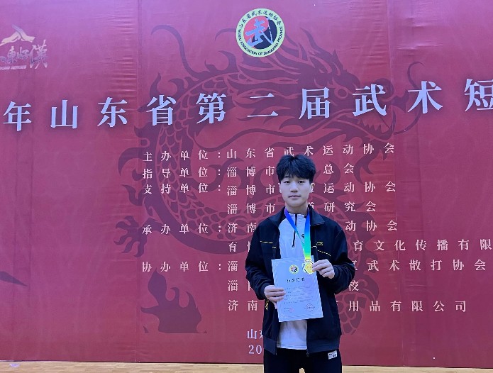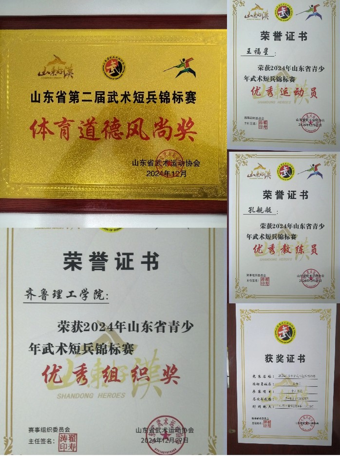 更新时间:2024-12-30 15:33 2024年12月28日,山东省第二届武术短兵锦标赛于淄博市张店区全民健身体育馆盛大举行,这场赛事吸引了全省各地240名武术精英齐聚一堂,展开激烈角逐。齐鲁理工学院曲阜校区在此赛事中脱颖而出,2023级计算机应用技术专业的学生王福星在短兵实战男子成年组56公斤级比赛中力压群雄,勇夺桂冠,同时还荣获了本次赛事的“优秀运动员”称号。其指导教师孔舰艇也凭借出色的指导能力,斩获“优秀教练员”殊荣,为学校争得了崇高的荣誉,在全省武术界彰显了曲阜校区的实力与风采。