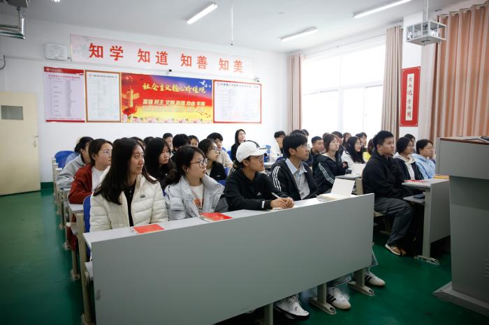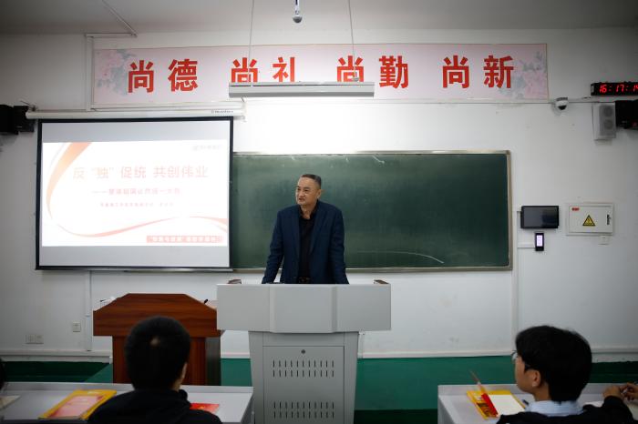 2026年4月9日,学校党委副书记李大华为商学院学生以“反‘独’促统共创伟业——塑造祖国必然统一大势”为主题,进行了一堂立意深远、内涵丰富的爱国主义思政课,厚植青年学生家国情怀,凝聚反“独”促统思想共识,引领学子坚定爱国信念,勇担统一使命。