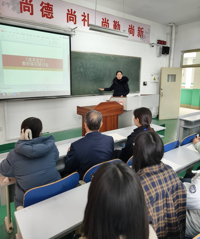 会议由吴兰飞教授主持,吴教授根据多年来教学经验,对《成本会计》课程整体知识框架、技能要求、学生学情等进行了深度分析。团队成员就教材整体架构、任务驱动式教学、思政内容融入、理论内容编写等方面进行了热烈的讨论,并对下一阶段编写工作做出明确规划。