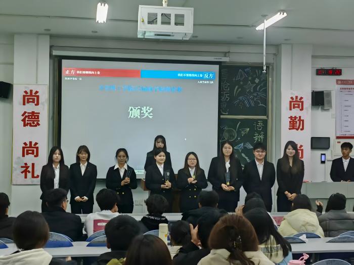 更新时间:2025-11-19 14:20 为丰富校园文化生活,锻炼学生逻辑思维与语言表达能力,搭建思想碰撞的交流平台,我院以“唇枪励思 语辩致知”为主题,11月16日在B312举办了辩论赛决赛。经过激烈角逐,赛事最终圆满落下帷幕。