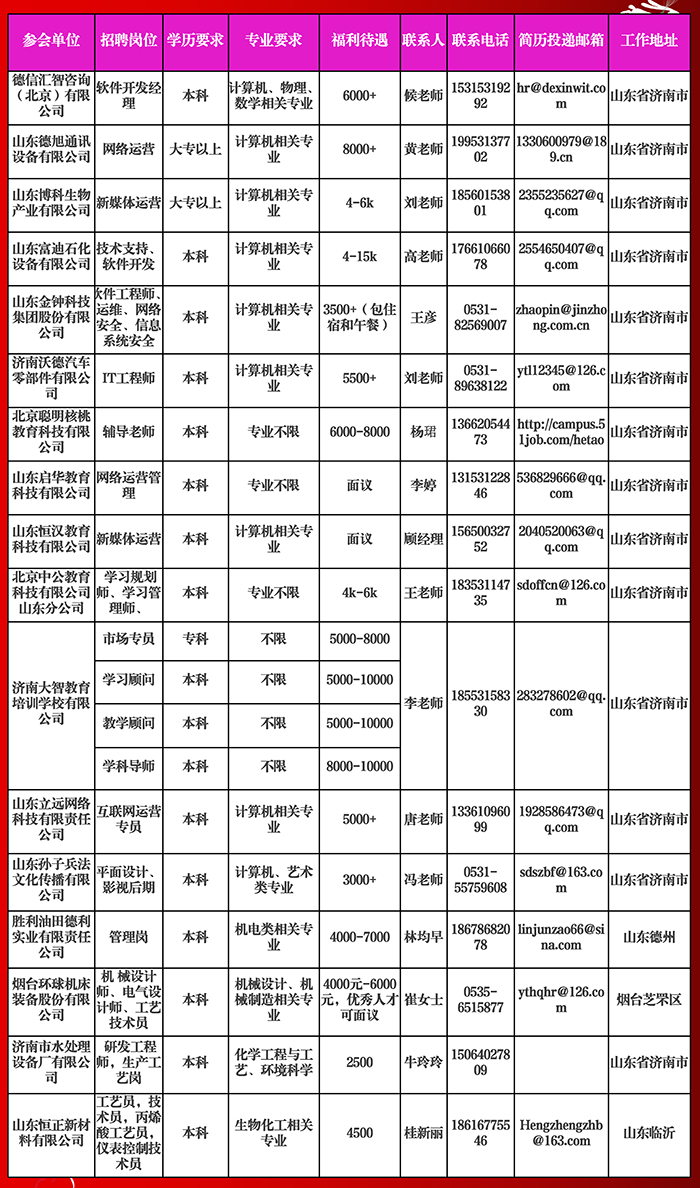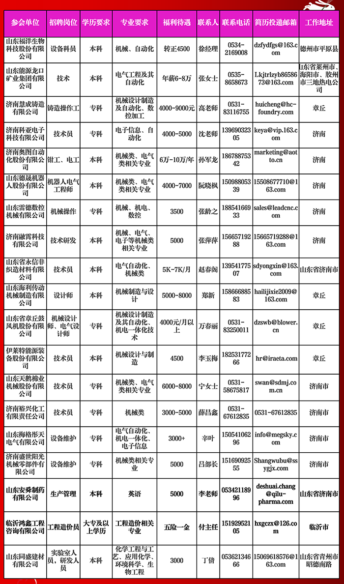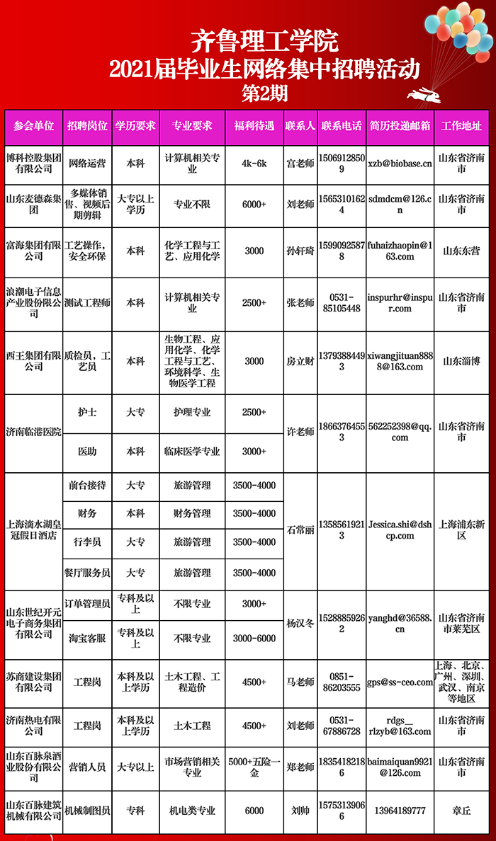 齐鲁理工学院2021届毕业生网络集中招聘会发布招聘信息(第2期)