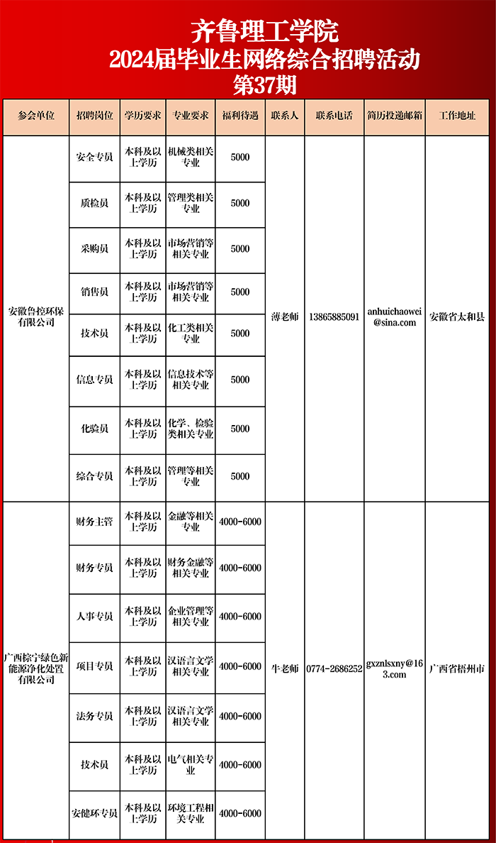 齐鲁理工学院2024届毕业生网络综合招聘活动相约周四(第三十七期)