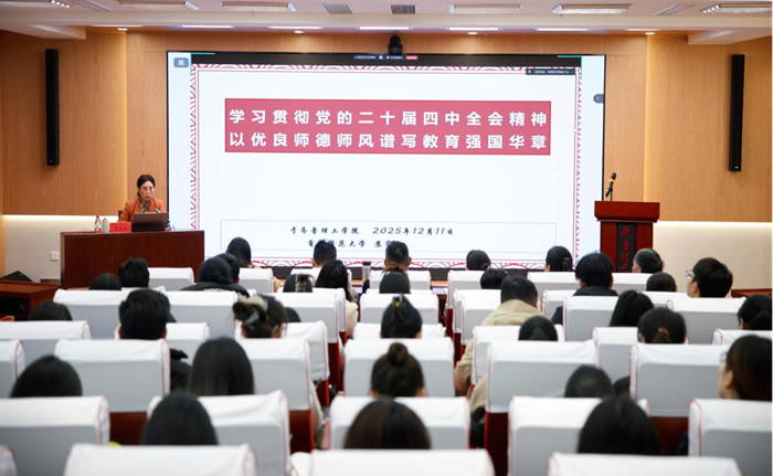 12月11日下午,学校举办“学习贯彻党的二十届四中全会精神,以优良师德师风谱写教育强国华章”专题培训。首都师范大学苏寄宛教授主讲,全校教师、辅导员、教学管理人员等500余人参加。