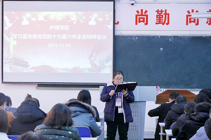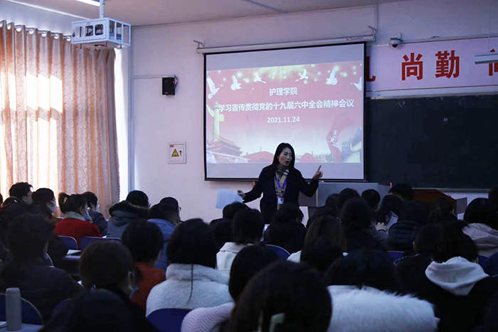 11月24日,我院组织专题学习会,深入学习党的十九届六中全会精神。护理学院全体教职工参加了学习活动,院长丁海玲主持学习。