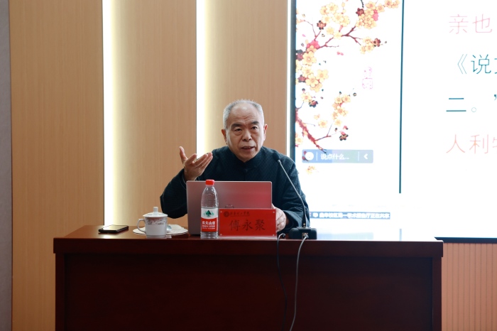 傅永聚教授从孔子、孟子等先贤的仁爱理念出发,通过解读《论语》《孟子》等古籍中的著名章句,生动展现了儒家仁爱思想从个人修养扩展到社会关怀乃至万物关爱的逻辑脉络。傅教授指出,仁爱不仅是个人的道德修养,更是社会和谐与国家治理的重要基石,鼓励学生从身边小事践行仁爱精神,在师生互动、同学相处中传递温暖,在专业学习中涵养品格,争做新时代仁爱精神的传承者和实践者。