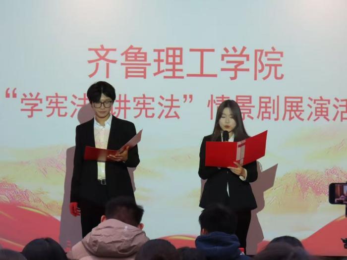 近日,我校于稷下楼2106教室开展了“宪法情景剧”展演活动,以沉浸式的演绎形式让宪法知识走进校园,让法治理念扎根学生心中。