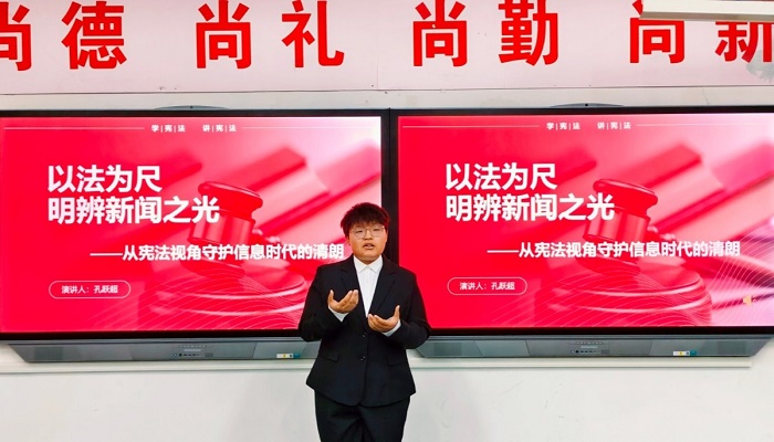 比赛紧扣宪法核心原则,选手们结合新闻传播专业背景与社会实际案例,系统阐释宪法精神、公民权利与义务,以及法治实践路径。演讲主题鲜明,论证结构清晰,语言表达力与情感感染力兼具,充分展现了同学们对宪法知识的深刻理解与信仰担当。现场气氛庄重而热烈,评审们对选手的专业素养与演讲风格给予肯定。