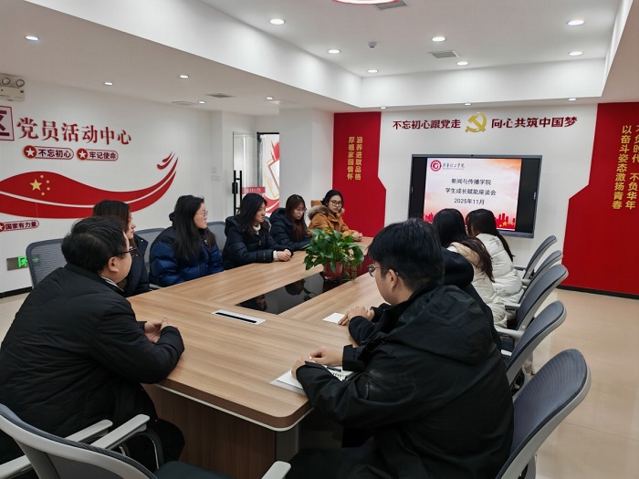 更新时间:2025-12-01 15:32 2025年11月19日,新闻与传播学院在四知驿站党员活动中心组织召开学生成长赋能座谈会,部分学生代表参会交流,学生辅导员俎海主持会议。