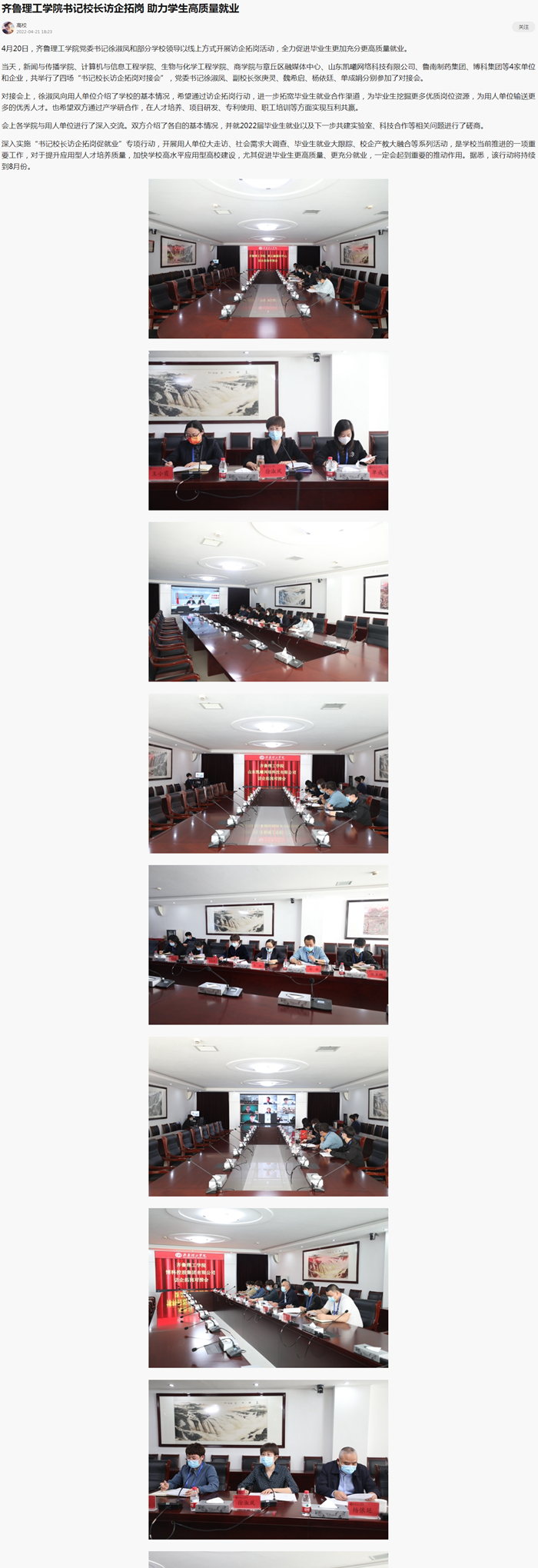 新浪:齐鲁理工学院书记校长访企拓岗 助力学生高质量就业