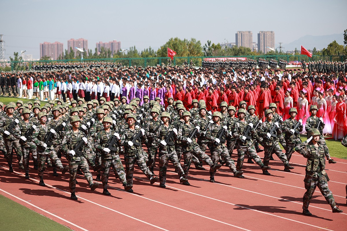典礼前,首先进行了2024级新生军政训练阅兵仪式。受阅方队迈着整齐坚定的步伐,喊着嘹亮的口号,昂首阔步依次走过主席台接受检阅。他们精神饱满、斗志昂扬、英姿飒爽,展现了2024级新生军训成果和蓬勃的朝气。