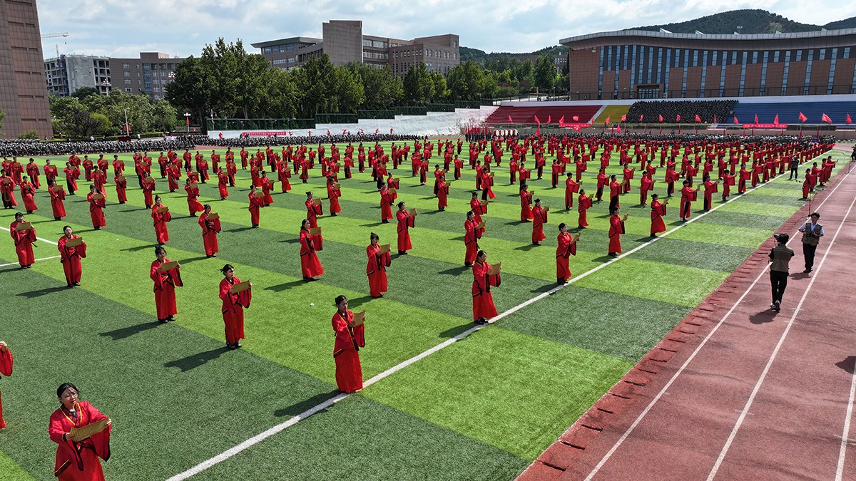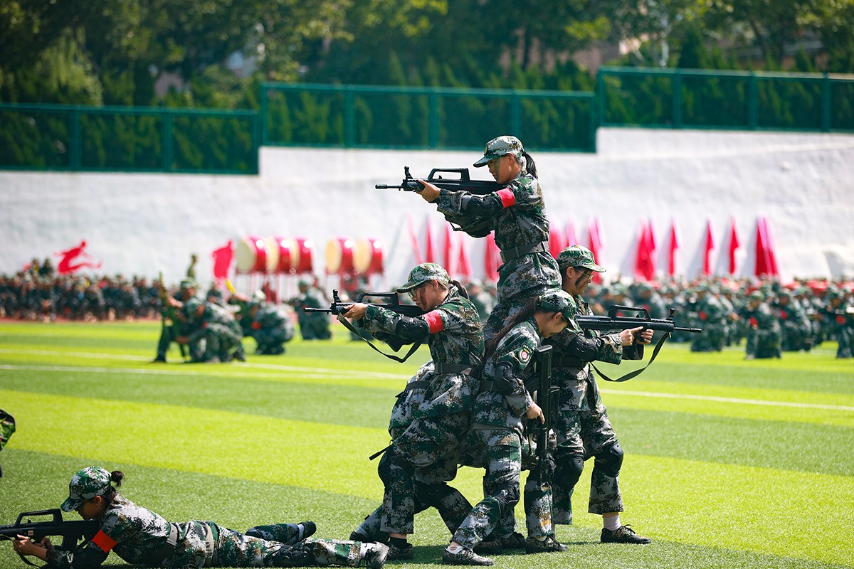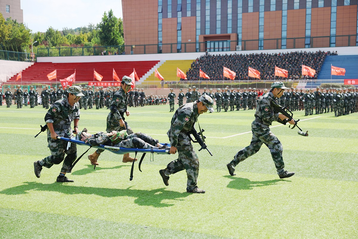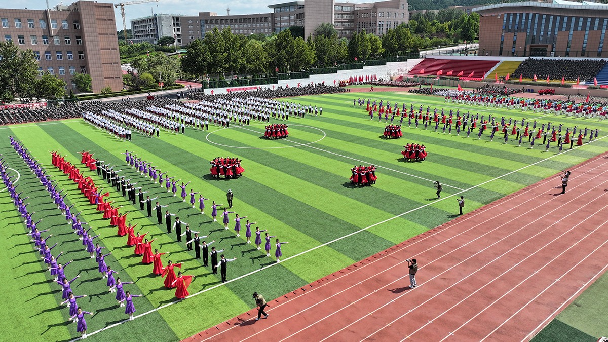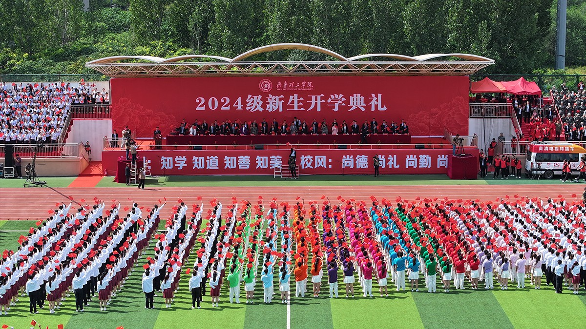 典礼上,2024级新生进行了精彩的汇报表演。《论语》诵读、军事技能表演、国标舞、校园舞等逐一上演,精彩纷呈,展现了齐鲁理工学子昂扬向上的精神风貌和青春活力,彰显出拼搏奋斗的精神和报效祖国的理想信念。