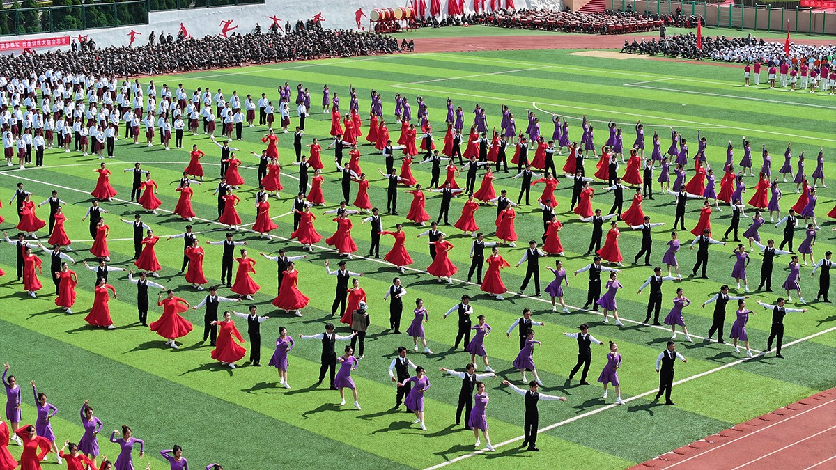 典礼最后,全场起立,万名师生挥舞手中的国旗,深情唱响《歌唱祖国》,表达对伟大祖国繁荣昌盛的美好祝愿,共同庆祝中华人民共和国成立75周年!