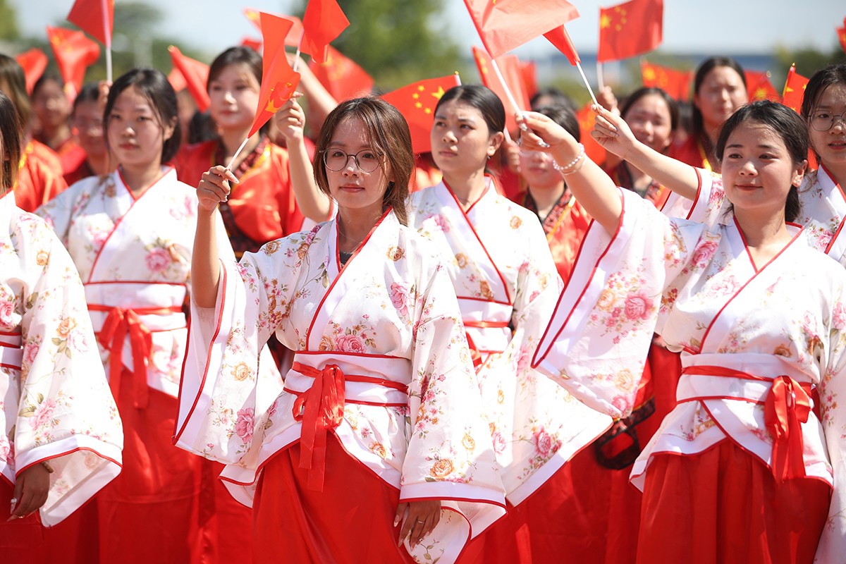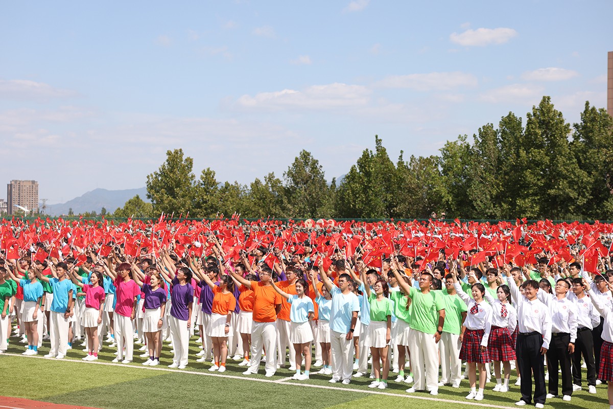 在鲜艳的五星红旗下,举行了教师、学生宣誓仪式。全体教师庄严宣誓,立志忠诚党的教育事业,弘扬教育家精神,牢记为党育人、为国育才的初心使命,为强国建设、民族复兴努力奋斗。2024级新生在宣誓中,表达了“请党放心,强国有我”的决心和信心。
