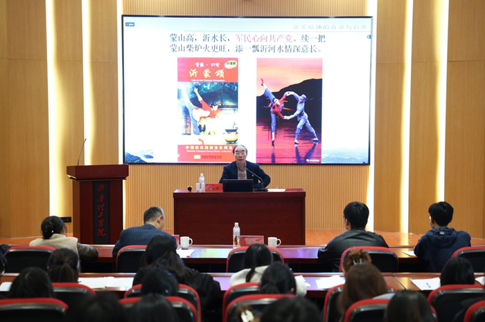 报告中,韩延明教授深刻阐释了什么是沂蒙精神的大爱情怀和大义壮举,以及如何大力弘扬沂蒙精神。一张张珍贵照片,一幕幕感人瞬间,一段段往事回忆,生动展示了“党群同心、军民情深、水乳交融、生死与共”的沂蒙精神的形成历程、深刻内涵和时代价值,给与会师生呈现了一堂形式新颖、内涵丰富的红色文化思政大课。
